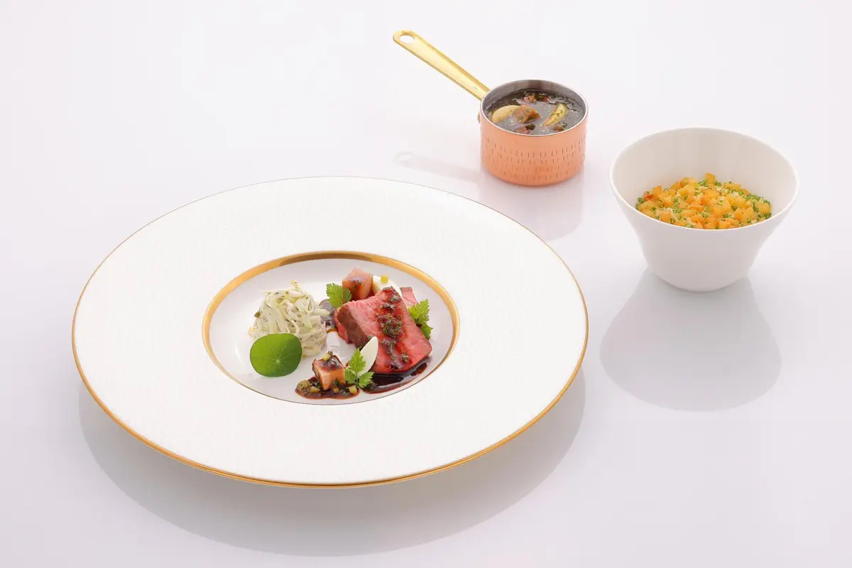 Across the city, suspended above Jakarta on the 22nd floor of the Fairmont, The Crown by Kirk Westaway reimagines modern British cuisine through elegance, restraint, and storytelling. Westaway, best known for steering Jaan to two Michelin stars, brings an approachability to fine dining without compromising refinement. His tasting menu opens with a whisper-light beetroot meringue, dissolving instantly into horseradish-tinged cream, and moves toward Indonesian-grown tomatoes dressed in a homemade “ketchup” paste atop burrata.
