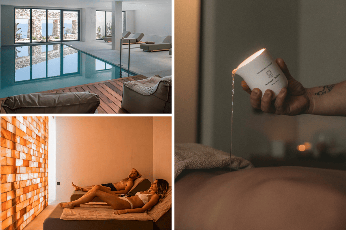 True to the island’s heritage, healing and holistic living remain central to the KOIA experience. Ydor Spa, inspired by ancient Greek wellness philosophy, features a private spa suite with a Himalayan salt wall, sauna, and steam bath. Water remains a constant restorative presence, whether in a private suite pool, the indoor heated spa pool, or the natural thermal springs of nearby Agios Fokas beach.