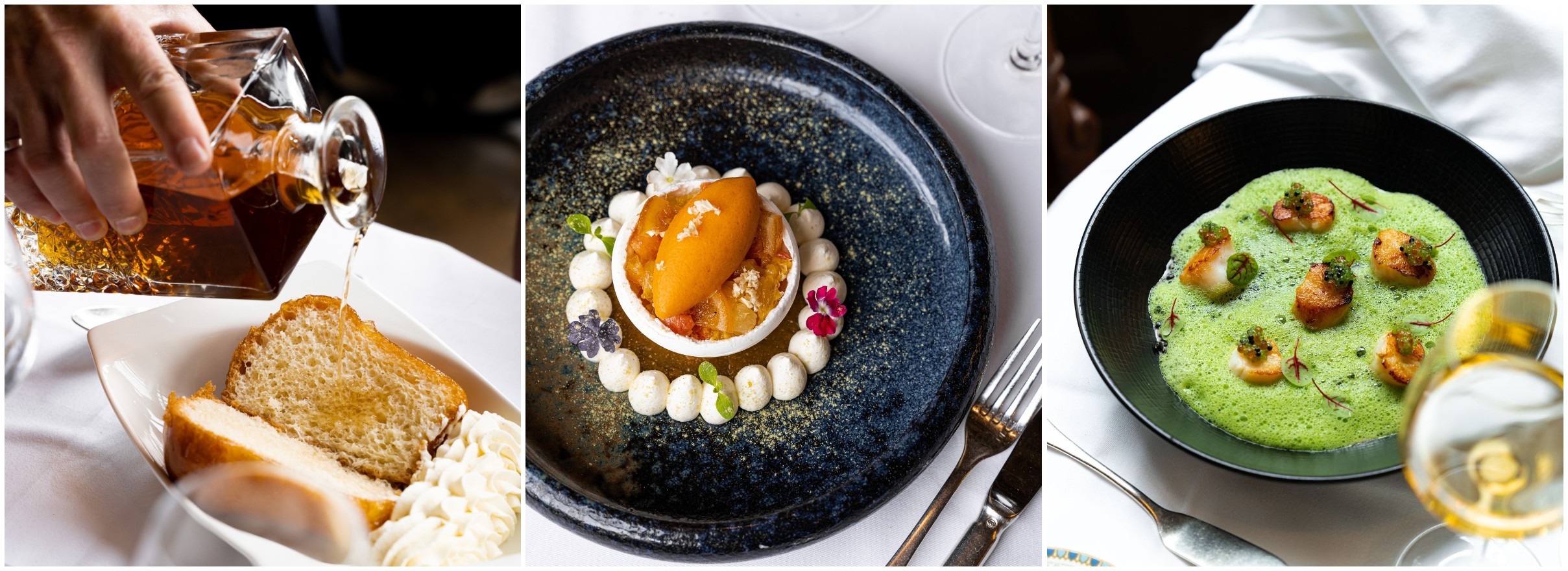 Scallops arrive like small, luminous treasures, seared gently so that their sweetness remains intact. Turbot is treated with grace, cloaked in a silken sauce that supports rather than competes. Quenelles appear weightless, suspended in their delicate richness, echoing the noble kitchens of another era.