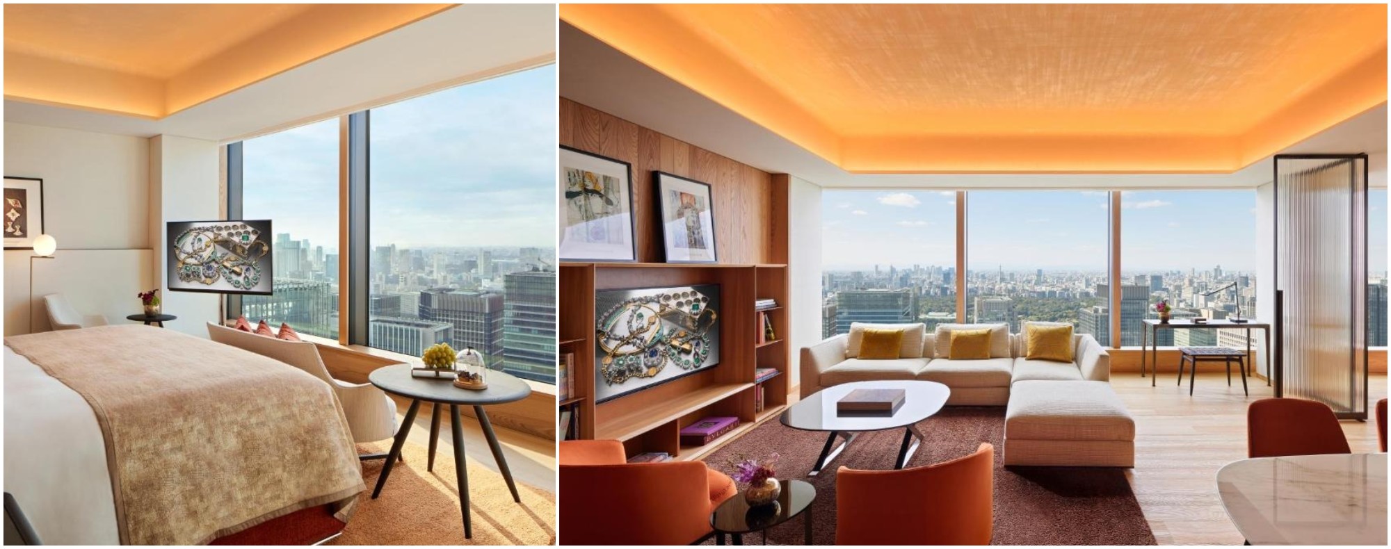 Suspended high above the city in Tokyo Midtown Yaesu, the Bvlgari Hotel Tokyo feels like a private universe carved from marble, light, and sky. Milanese studio Antonio Citterio Patricia Viel brings Bvlgari’s iconic refinement to life with sculpted travertine, custom Italian furnishings, and bronze accents that glimmer beneath floor-to-ceiling windows. Views sweep across the Imperial Palace Gardens to Mount Fuji on clear days, turning the skyline into a shifting artwork. Dining becomes theatre at Sushi Hōseki and Il Ristorante by Niko Romito, while the Bvlgari Spa, with its luminous onyx and marble pool, floats like a sanctuary above the metropolis. This is Tokyo in its most polished, poetic form 2-2-1 Yaesu, Chuo-ku Tokyo 104-0028, Japan. Tel: +81 3 6262 3333.