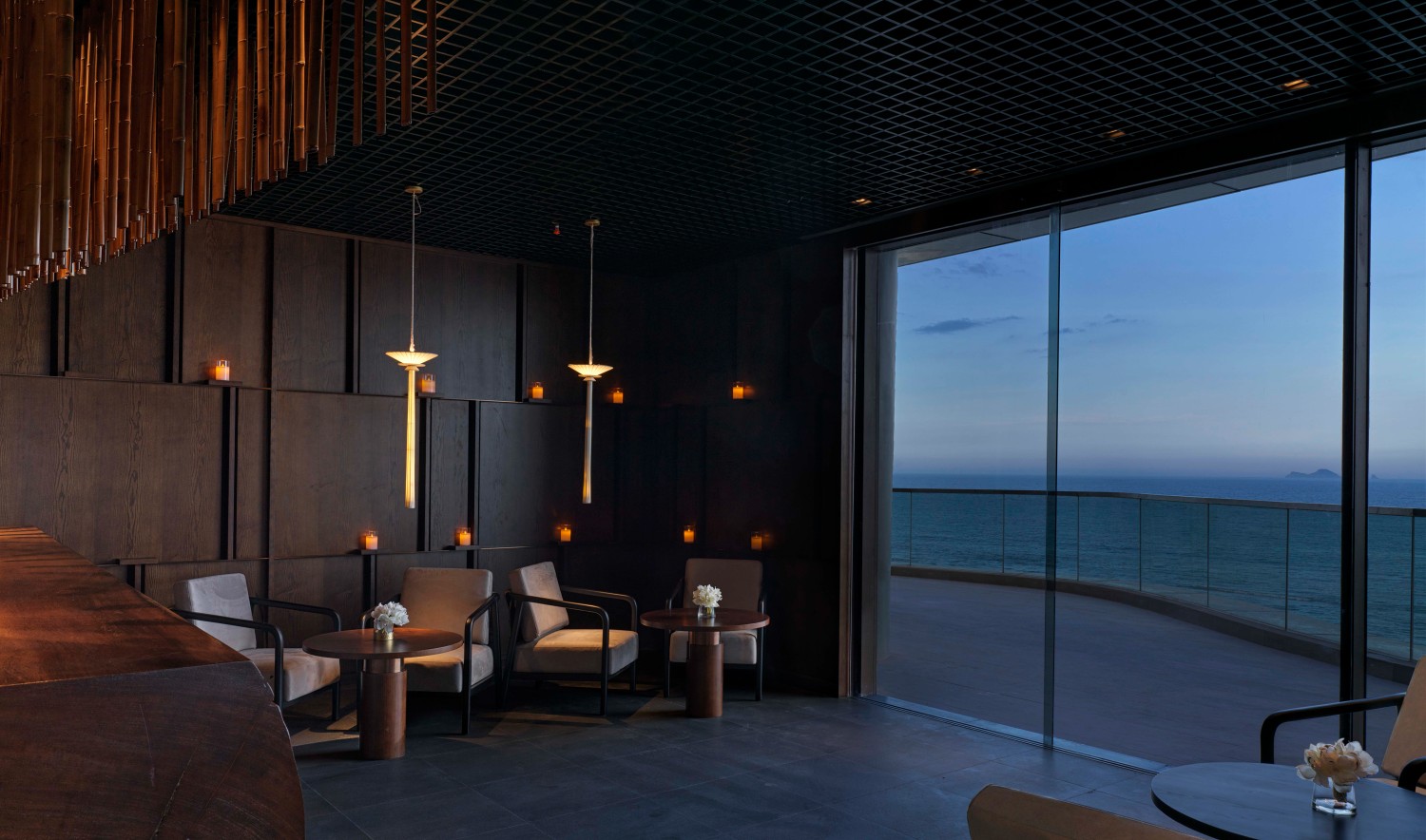 Design and atmosphere elevate the experience further. Minimalist geometry, warm wood tones and softened light create a contemplative environment overlooking the coast. Private dining rooms and personalised pacing reinforce discretion and exclusivity, while service remains intuitive and impeccably choreographed.