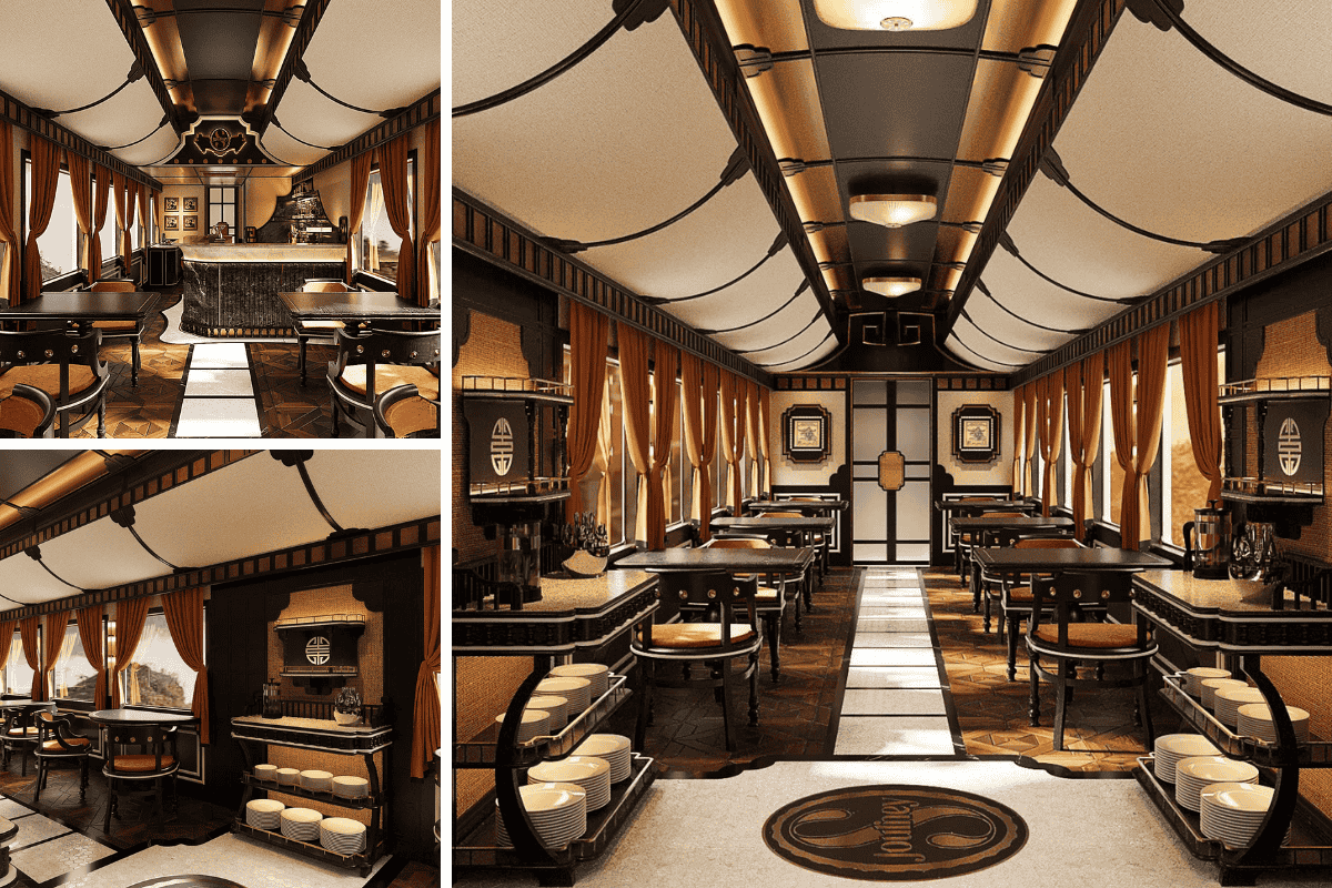 Onboard, SJourney unfolds as a carefully composed world. Thirteen carriages house sleeper cabins, two restaurants, and a central kitchen, all envisioned in a refined Indochine aesthetic. Bamboo, polished wood, and handcrafted details create a dialogue between Vietnamese heritage and French colonial influence. Each cabin reflects the standards of a five-star suite, elevated by discreet yet attentive butler service.