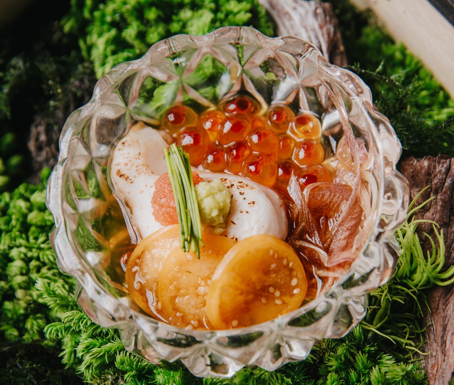 Premium fish arrives directly from Japan’s famed markets, handled with the precision and sensitivity that omakase demands. Yet the narrative unfolds further, shaped beautifully by Vietnamese intuition. Fragrant Hoa Lộc mango, delicate lotus roots and leaves, pristine seafood from local waters, and treasured Nha Trang bird’s nests whisper of landscapes, seasons, and heritage. These ingredients do not compete; they converse - forming sauces, garnishes, and subtle accents that feel at once luxurious and familiar.