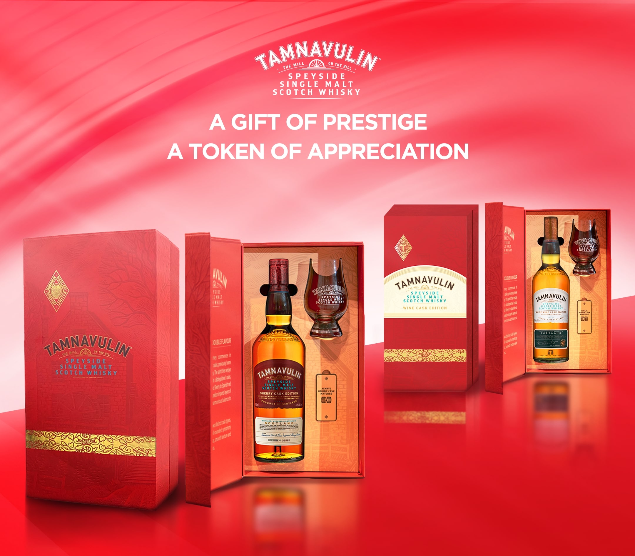 The deep crimson Tamnavulin Tet Collection beautifully symbolizes the refined art of treasured giving. It functions as a meaningful cultural connection, seamlessly merging the heritage of Scottish whisky with the warmth of Vietnamese Tet traditions.