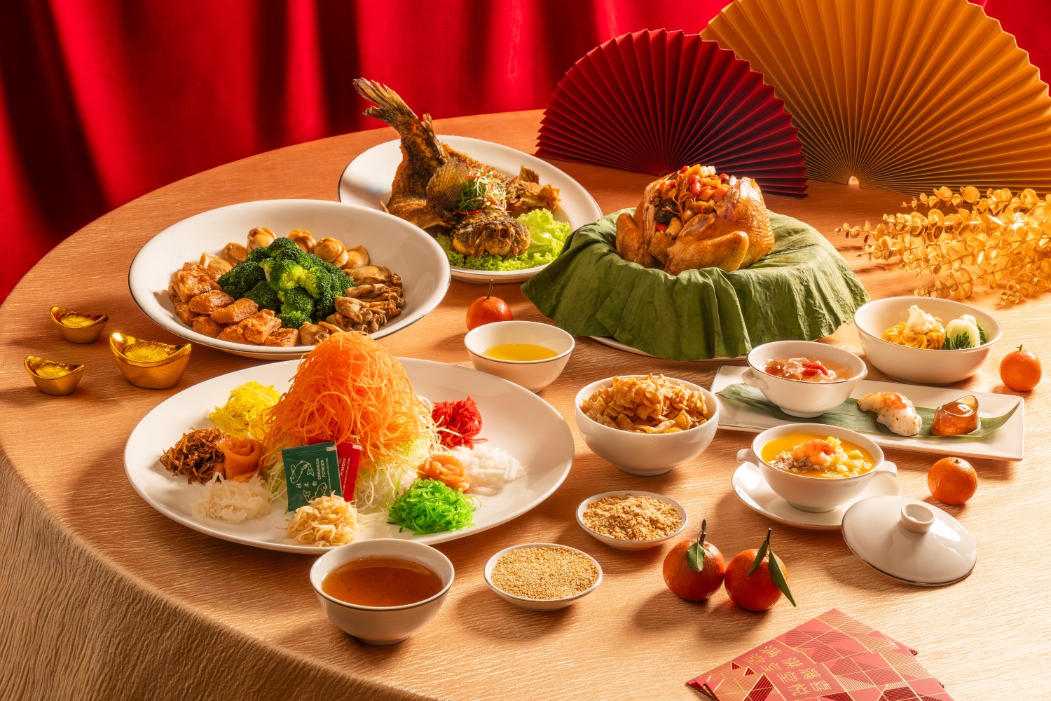 Highlights include Yu Sheng with sustainable smoked salmon and jellyfish; lavish Bountiful Treasure Pot featuring premium ingredients, such as abalone, dried scallop, fish maw, and smoked duck, braised eight treasures chicken with Chinese herbs wrapped in lotus leaf, barbecued whole roast duck; and Chef’s special seafood fried rice with salted egg yolk.