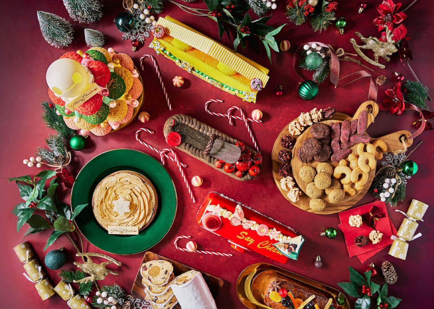 One Farrer Hotel brings festive cheer with both playful showstoppers and comforting traditions. Make a statement with the colourful rainbow choux tower, or keep it classic with rum- and red wine-soaked fruit cake finished with amarena cherries, mixed fruit stollen, or a caramel pecan pie. Christmas cookies featuring silver moon tea apple, chocolate sea salt and checkerboard designs are easy crowd-pleasers. For the main event, the hotel also offers hearty festive roasts, from satay-marinated turkey or chicken to traditional roast turkey and pineapple-glazed gammon ham.