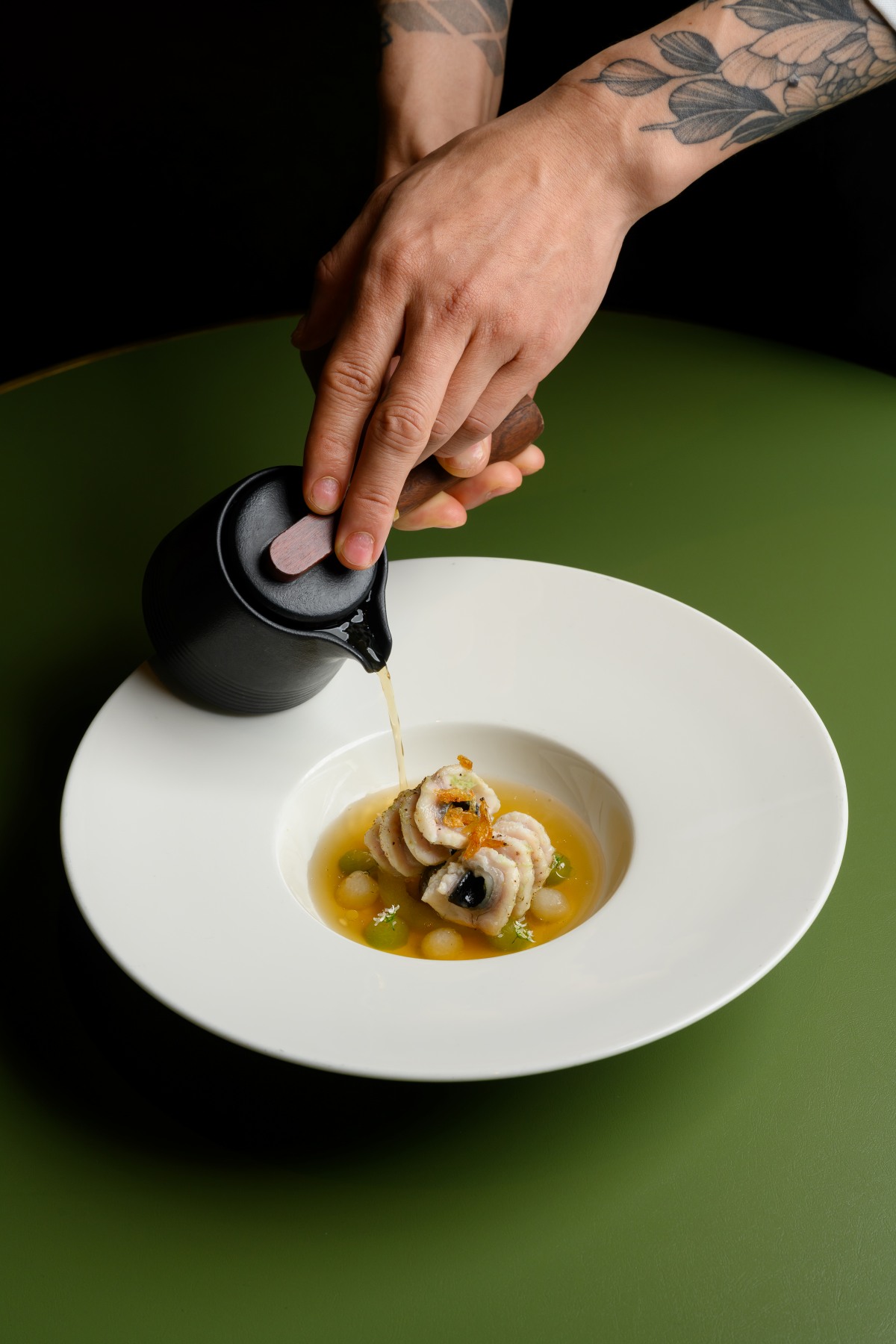 Seasonal additions further highlight the kitchen’s technical discipline. The Eel Soup layers freshwater eel and sea cucumber within a clear chicken consommé, brightened subtly by Asian pear and winter melon. Light yet deeply structured, it underscores the precision required in broth-based cuisine. Equally refined, The Abalone pairs tender abalone with foie gras and oolong, balancing richness with tannic clarity and deliberate proportion.
