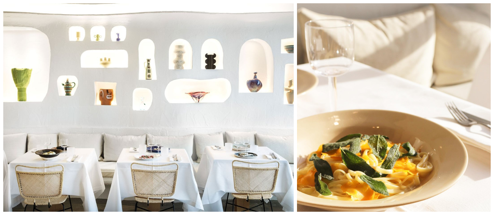 Within the Galeries Lafayette Champs-Élysées lies Oursin, a Mediterranean sanctuary created by Simon Porte Jacquemus in collaboration with Caviar Kaspia. Translating to “sea urchin,” Oursin channels the carefree elegance of the French Riviera, with whitewashed interiors, bespoke ceramics, and light-dappled alcoves. Chef Erica Archambault presents a seafood-rich menu infused with seasonal freshness: lobster with caviar, linguine with clams and Sicilian salsa, or artichokes drizzled with lemon yogurt. Every detail down to Athenian ceramist Daphne Leon’s tableware reflects Jacquemus’ playful yet refined design sensibility. Oursin distills Mediterranean joie de vivre, offering Paris a perpetual summer where fashion, food, and design converge.