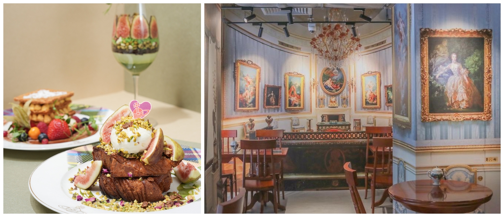 Set inside the brand’s flagship at Causeway Bay’s Fashion Walk, the Vivienne Westwood Café encapsulates the British designer’s irreverent yet aristocratic style. Guests enjoy afternoon tea, coffee, and cakes adorned with the Orb logo, served on tartan-embellished china. Interiors reimagine an 18th-century French tea salon through Vivienne’s lens, layered with trompe l’oeil wallpaper, South African rosewood furniture, and her signature “World’s End” clock ticking anticlockwise in defiance of convention. It is a theatrical stage where punk meets baroque, and where each sip recalls Westwood’s audacious spirit. The café transforms dining into performance at once whimsical, rebellious, and utterly British.