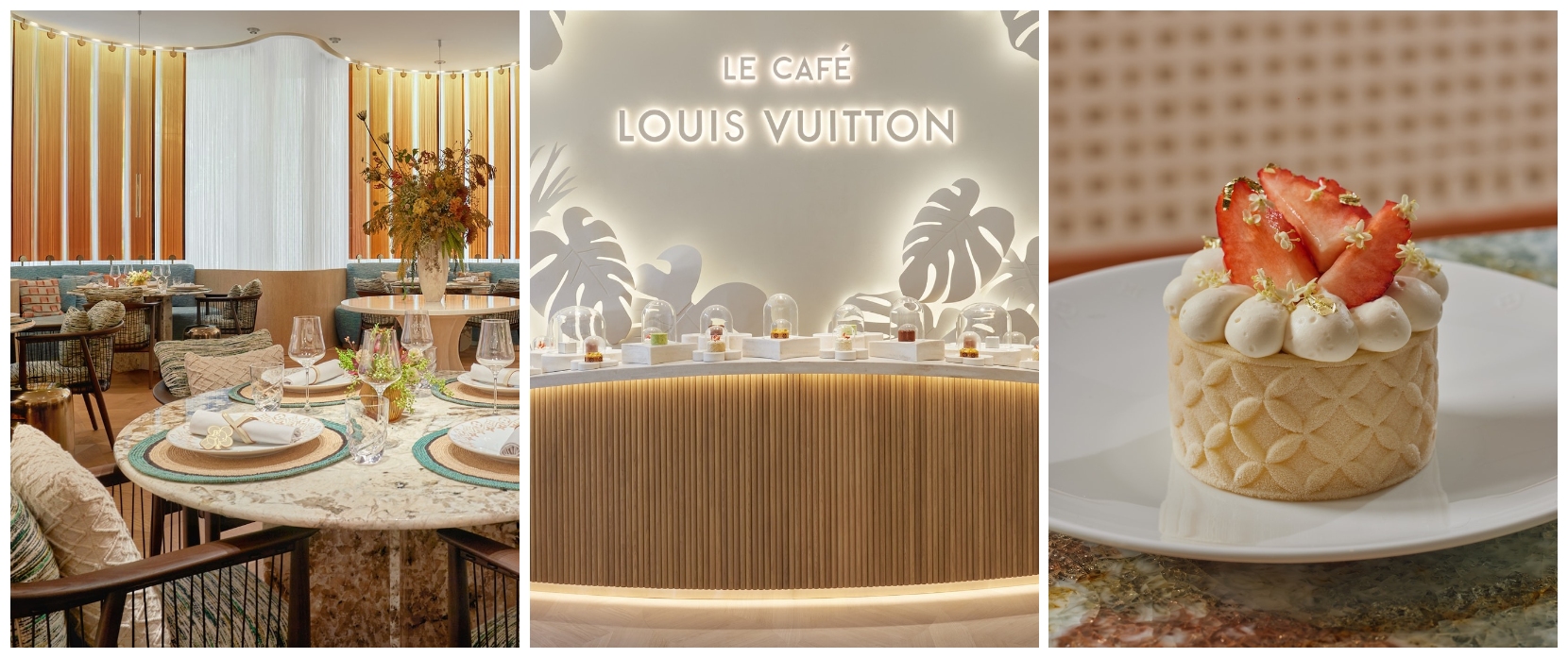 Nestled inside LV The Place at Bangkok’s Gaysorn Amarin Mall, the LV Café marks Louis Vuitton’s entrée into South Asia’s dining scene. The space is a masterful blend of natural materials, raffia, wood, and signature Monogram floors, styled with Maison’s iconic Objets Nomades furniture. The menu mirrors Vuitton’s timeless codes, offering desserts that subtly reference the brand: the Star Blossom Cake adorned with caramel and chocolate, and the pistachio-infused Monogram Cake with orange blossom. Local inspiration shines in creations like the Mango Sticky Rice Fizz. With culinary direction from celebrated chef Gaggan Anand, LV Café is both a feast and a journey through Vuitton’s visionary artistry.