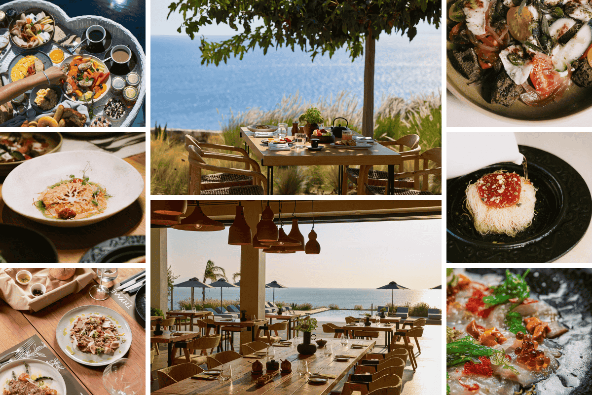 That same sensibility continues at Oregano Gastro Taverna, a new dining concept where the Greek taverna is reimagined with understated sophistication. Positioned beside the pool and overlooking Cape Agios Fokas, the restaurant is shaped as much by atmosphere as by cuisine, with shifting sunlight, sea air, and the scent of wild herbs all becoming part of the experience. Under the direction of Executive Chef Manolis Marangos, the menus move gracefully between familiarity and refinement: lunch celebrates generous, soulful Greek classics, while dinner offers a more nuanced interpretation of traditional flavours, guided by seasonality and local provenance.