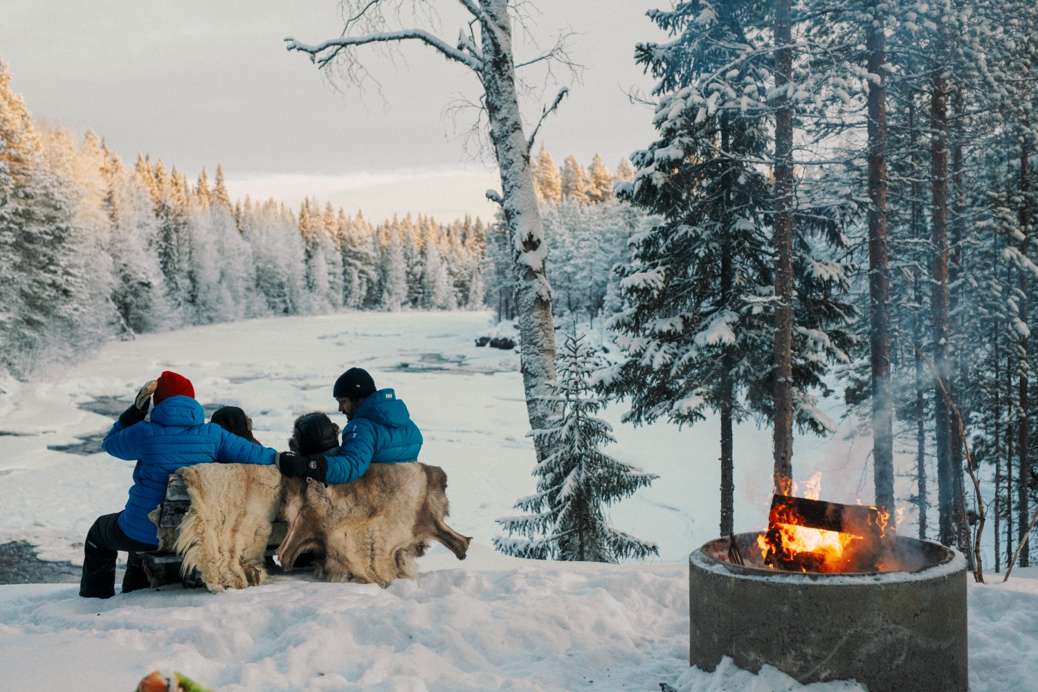 Traditional Swedish winter activities such as Nordic skiing, snowmobile-riding, dog sledding, and a campfire ‘fika’ coffee break.