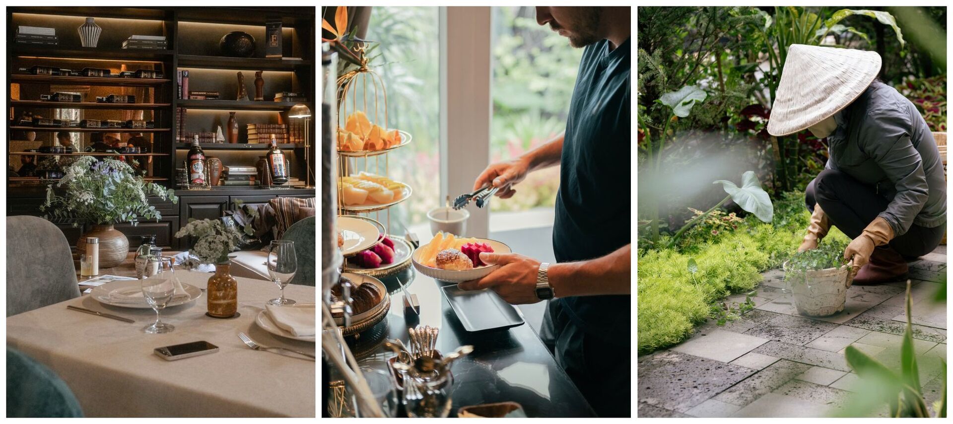 As evening settles, the garden softens into low light and cool air. Sounds fade, and the city becomes distant. It is in these moments that guests often feel most at ease—unwinding not through spectacle, but through stillness, warmth, and time allowed to pass naturally.